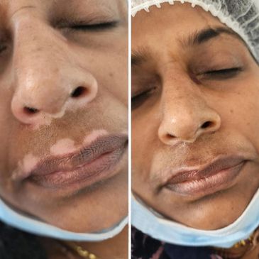 Custom blended pigment is deposited into the white areas of the skin to blend with the surrounding skin. It is a semi-permanent makeup treatment that lasts for years without washing off. Could take a few sessions, and touch ups.